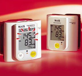 24-Stunden-Geräte mit der einfachen Selbstmessung. Blinkende Werte warnen bei hohem Blutdruck: Sie erkennen sofort, ob der systolische, diastolische oder beide Werte zu hoch sind. Nur Nais hat diese Warnfunktion!